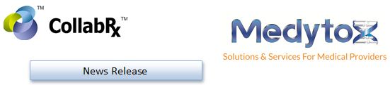 “We expect that this merger will dramatically speed up our growth,” said Seamus Lagan, CEO of Medytox Solutions, Inc. “Furthermore, the addition of CollabRx adds great depth to our company and places Medytox among the most elite, most innovative healthcare enterprises operating in the industry today. Together, we will show the world how state-of-the-art technology and vertical integration can improve health outcomes, and return value to shareholders in the process.”