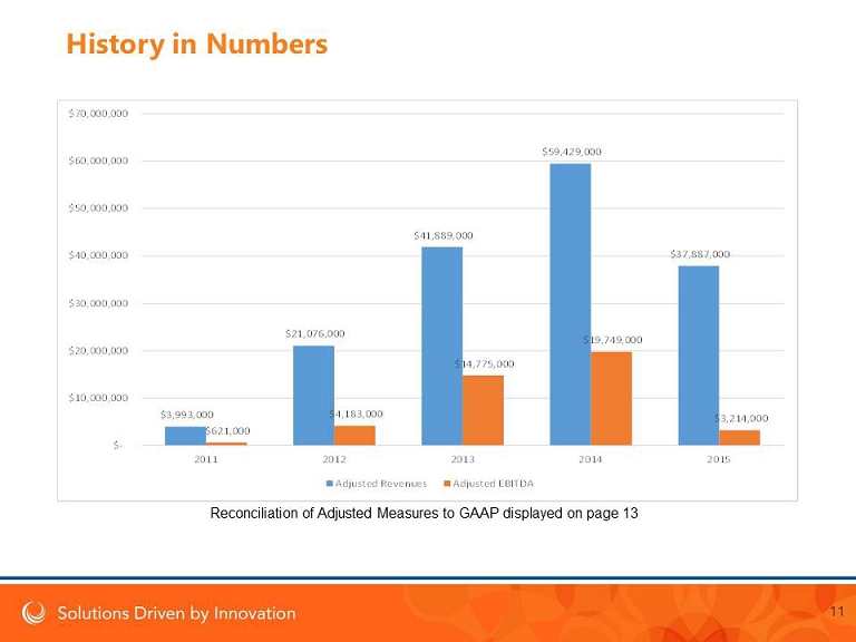 History in Numbers $3,993,000 $21,076,000 $41,889,000 $59,429,000 $37,887,000 $621,000 $4,183,000 $14,775,000 $19,749,000 $3,214,000 $- $10,000,000 $20,000,000 $30,000,000 $40,000,000 $50,000,000 $60,000,000 $70,000,000 2011 2012 2013 2014 2015 Adjusted Revenues Adjusted EBITDA Reconciliation of Adjusted Measures to GAAP displayed on page 13 11