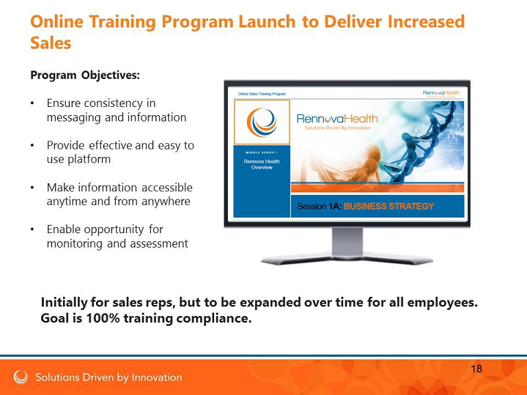 Program Objectives: • Ensure consistency in messaging and information • Provide effective and easy to use platform • Make information accessible anytime and from anywhere • Enable opportunity for monitoring and assessment Initially for sales reps, but to be expanded over time for all employees. Goal is 100% training compliance. 18 Online Training Program Launch to Deliver Increased Sales