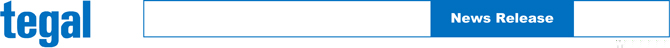Tegal Corporation 140 2nd St., Ste. 318, Petaluma, CA 94952 [T] (707) 763-5600 [F] (707) 773-2854 www.tegal.com