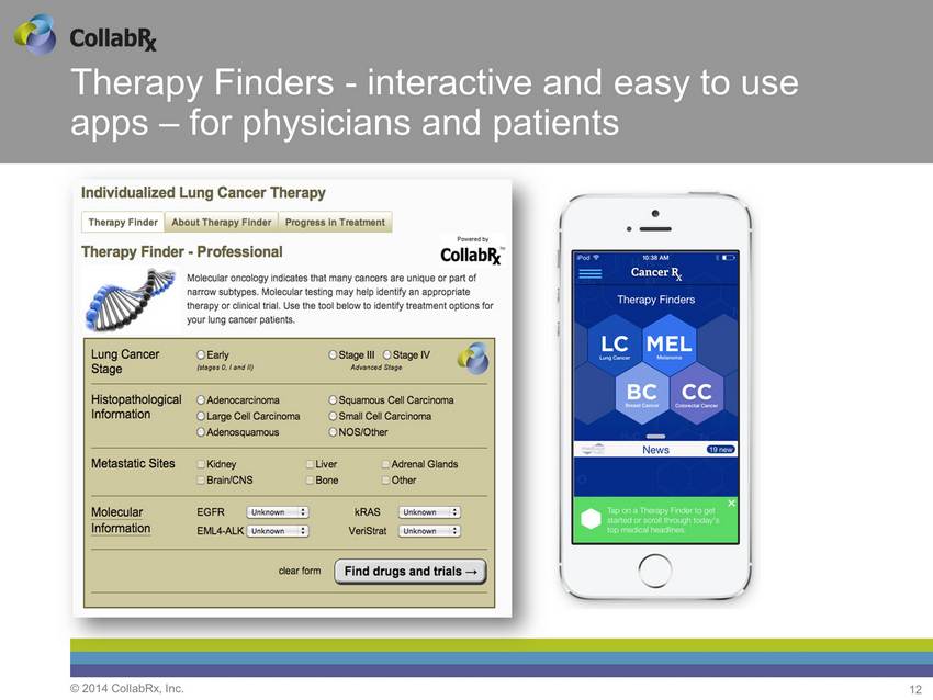 12 Therapy Finders - interactive and easy to use apps – for physicians and patients © 2014 CollabRx , Inc.