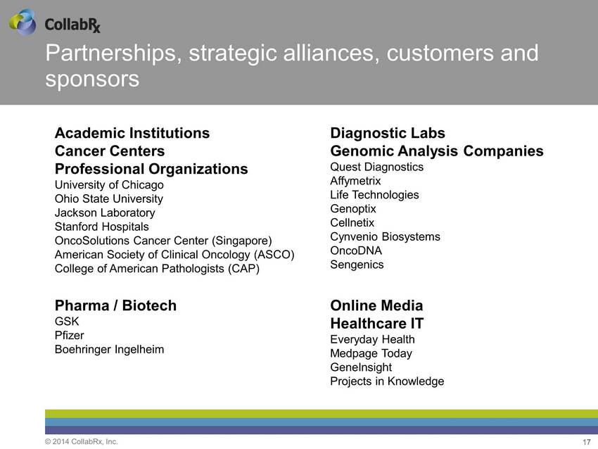 NASDAQ: CLRX CollabRx: Empowering Cancer Care Expert systems for genomics - based cancer treatment planning Issuer Free Writing Prospectus Filed Pursuant to Rule 433 Registration No. 333 - 193019 June 17, 2014